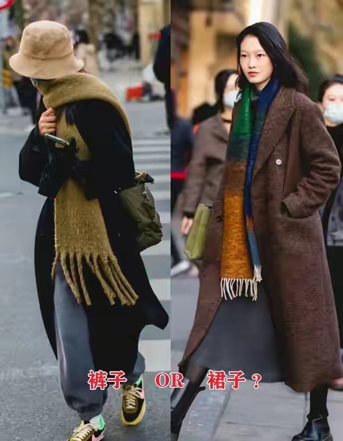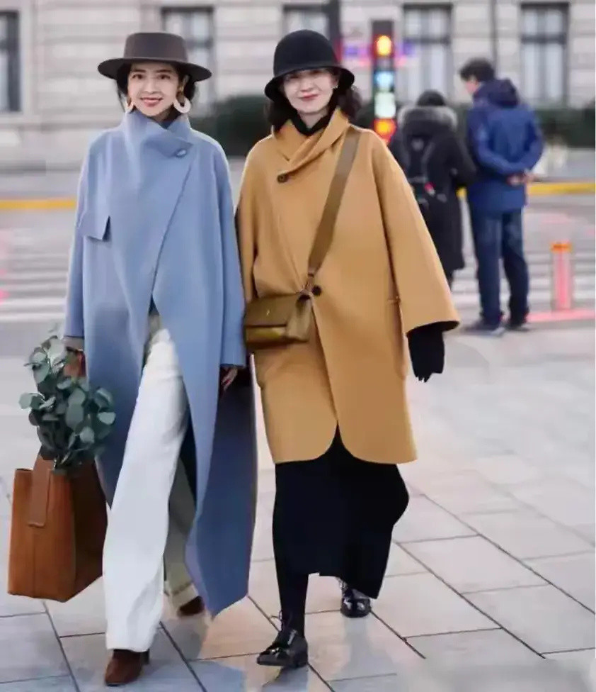 其实大衣外套就可以达到保暖舒适的效果,但我们选择的衣服颜色和款式过于老旧,穿在身上就会像下面这两位中年女性一样,显得土气感十足,无法提升整体造型的档次。