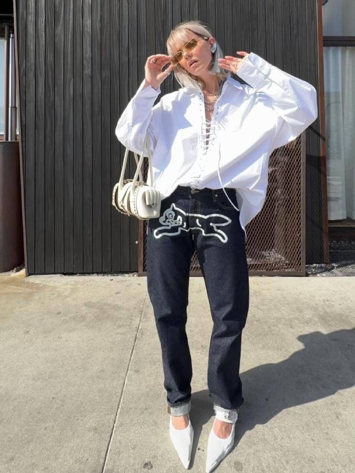 nikeanniya 最擅长的就是 “把基础款玩出花样”,她的衣柜里很少有小众难搭的单品,更多是白衬衫、牛仔裤、针织衫、基础款外套这类大家都有的服饰,但通过细节搭配,总能让普通单品焕发出新的生命力。比如一件简单的白色针织衫,她不会单穿,而是内搭一件条纹小吊带,露出领口的边角,瞬间增加层次感;下装搭配高腰直筒牛仔裤时,会把针织衫的下摆轻轻塞进裤腰,再搭配一条金属质感的细腰带,既优化了身材比例,又让整体造型多了几分精致感,哪怕是日常去咖啡馆、逛超市,这样穿也能显得利落又好看。